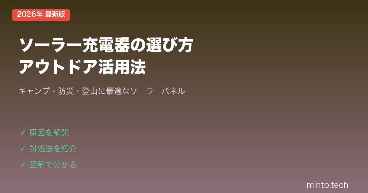 ソーラー充電器(ソーラーパネル)は、アウトドアや防災の場面で電源問題を解決してくれる心強いアイテムです。この記事のポイントをまとめます。