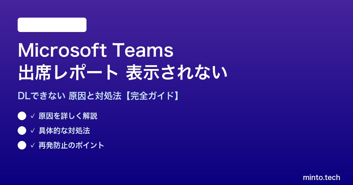 Microsoft Teamsの出席レポートが表示されない・ダウンロードできない問題は、複数の原因が組み合わさって発生することがほとんどです。今回解説した5つの対処法を上から順に試していくことで、ほとんどのケースで解決できます。