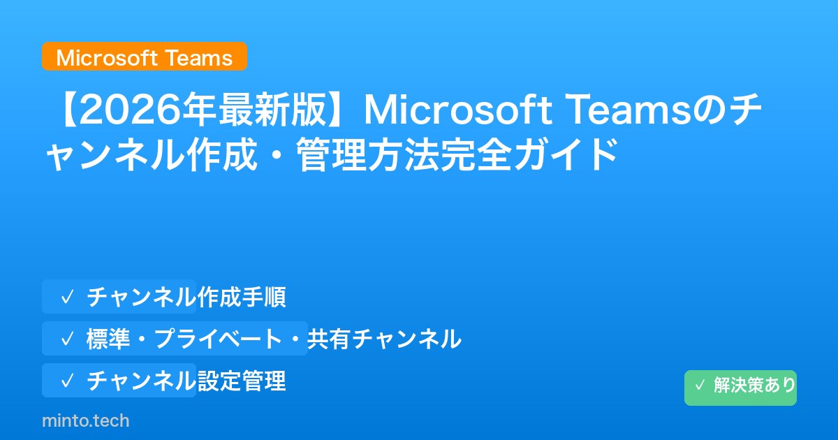 この記事では、Teamsチャンネルの基本から、標準・プライベート・共有チャンネルの作成手順、設定管理、よくあるトラブルの対処法まで完全解説します。Teamsを導入したばかりの管理者の方にも、一般ユーザーの方にもわかりやすく説明します。