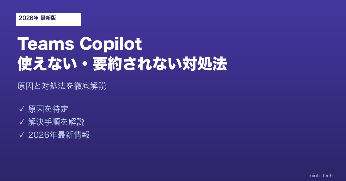 Home / Microsoft / 【2026年最新版】Microsoft TeamsのCopilotが使えない・会議要約されない原因と対処法【完全ガイド】
