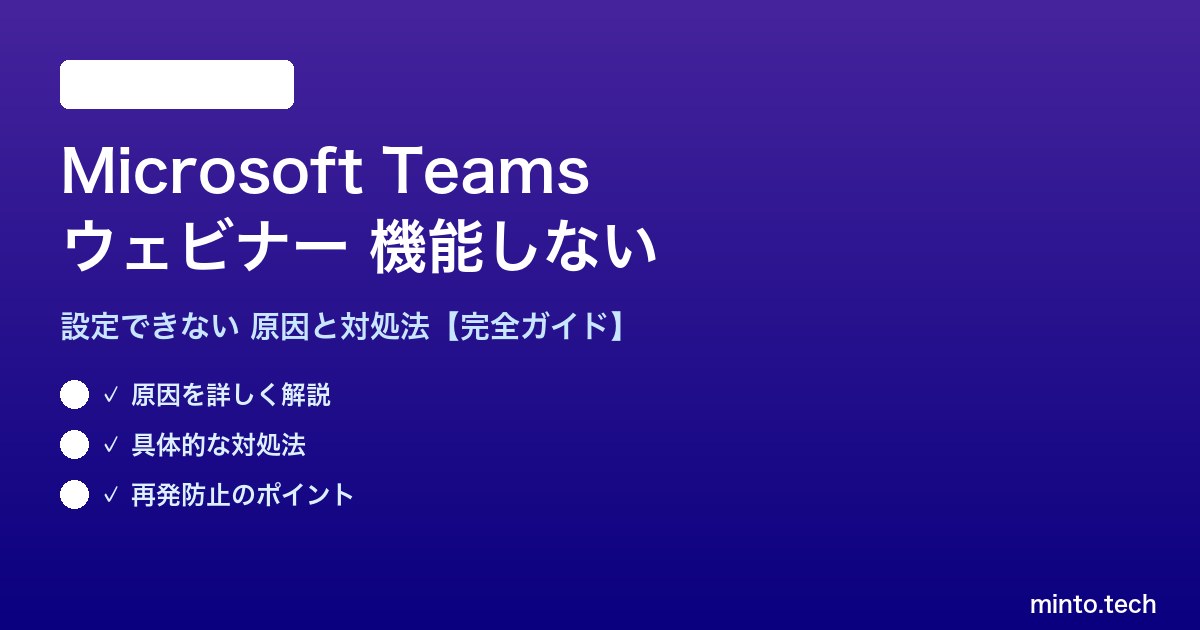 本記事では、Teamsウェビナーが機能しない・設定できない原因を体系的に解説し、状況別の対処法を丁寧に説明します。2026年現在の最新情報に基づいた完全ガイドです。