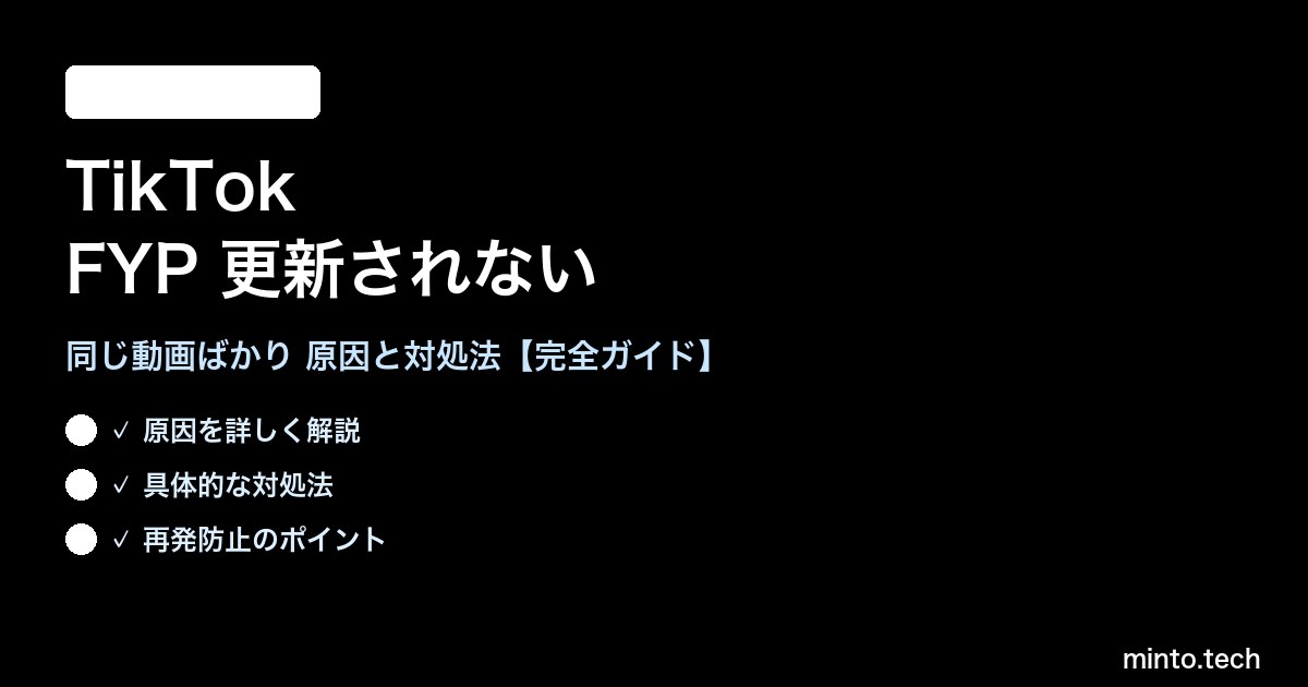 この記事では、TikTokのFYPが更新されない問題の根本的な原因を解説したうえで、2026年最新の対処法を一つひとつ丁寧に紹介します。スマートフォン初心者の方でも迷わず実践できるよう、画面の操作手順まで具体的に説明します。