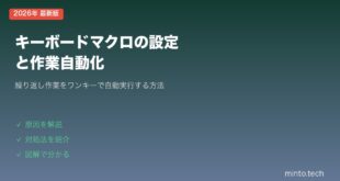 minto.tech スマホ(Android/iPhone)・PC(Mac/Windows)の便利情報をお届け! 月間アクセス160万PV!スマートフォン、タブレット、パソコン、地デジに関する素朴な疑問や、困ったこと、ノウハウ、コツなどが満載のお助け記事サイトはこちら!