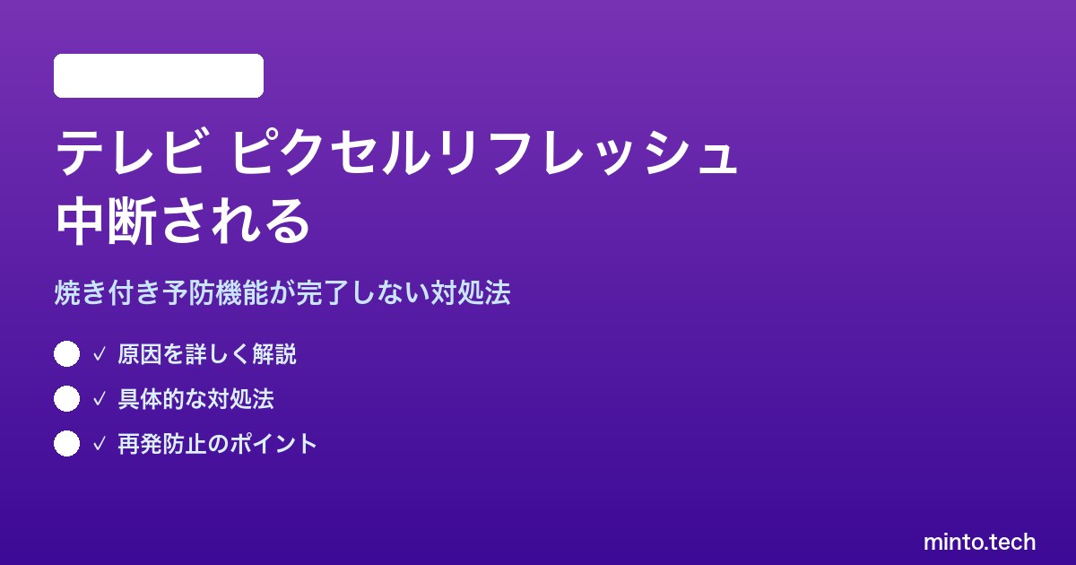 OLEDテレビのピクセルリフレッシュ(Pixel Refresher)機能が完了前に中断されてしまう——そんな問題で困っている方は少なくありません。せっかく始まった画面焼き付き防止の処理が途中で止まると、残像やムラが蓄積し続けるリスクが生じます。