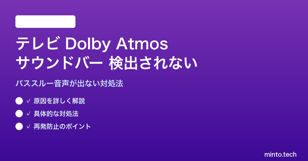 テレビのDolby Atmosパススルーでサウンドバーが検出されない問題の主な原因と解決策をまとめます。
