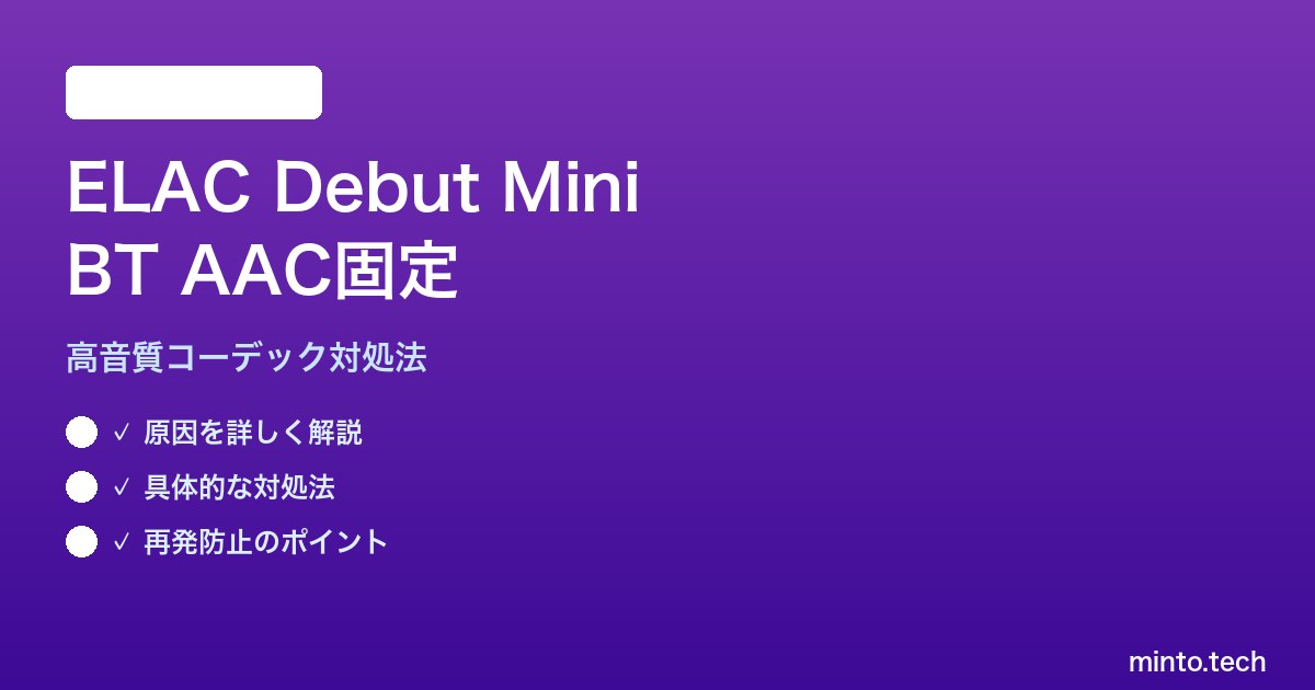 「ELAC Debut Mini AmplifierをBluetoothで接続したのにAACしか選べない」「aptX・LDACが使えると思って購入したのに設定が見つからない」「Androidスマホを使っているのにaptXで接続できない」——ELAC Debut Mini Amplifierのコーデック問題で困っているユーザーからよくある相談です。