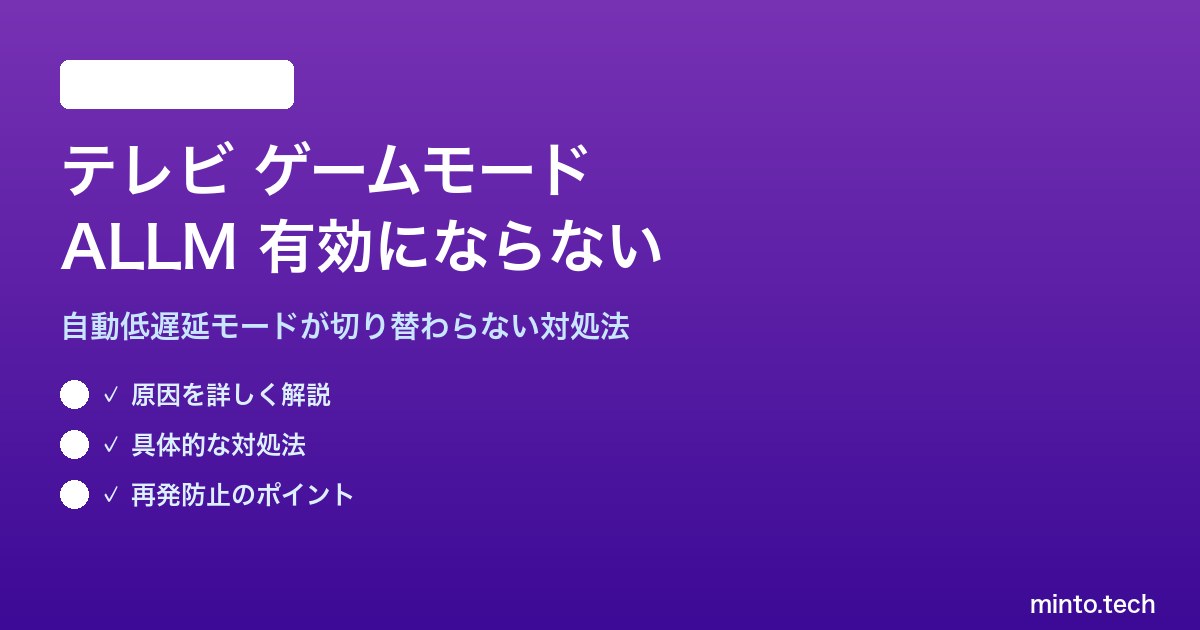 テレビのゲームモード(ALLM自動低遅延)が有効にならない原因の多くは、HDMIケーブルの規格の不一致、テレビまたはゲーム機側のALLM設定がオフになっていること、HDMI 2.1対応でない端子への接続のいずれかです。