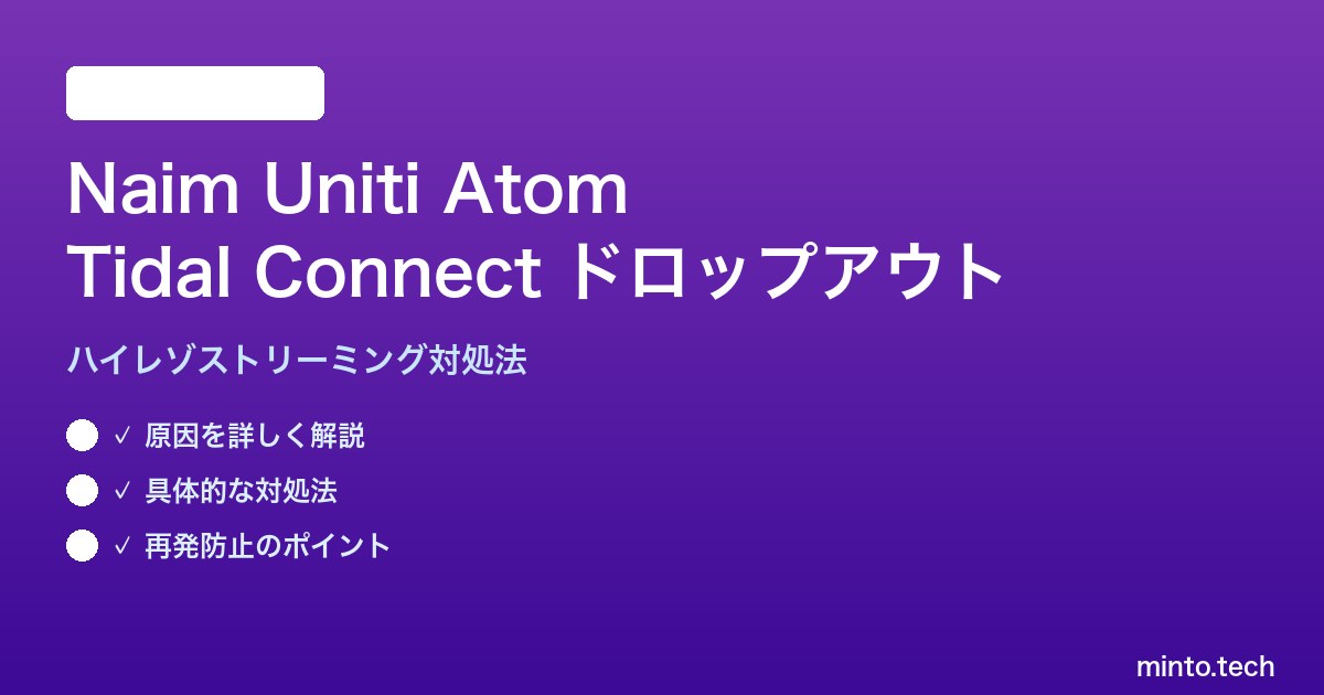 本記事では、Naim Uniti AtomのTidal Connect再生でドロップアウトが発生するあらゆる原因を解析し、2026年時点で有効な対処法を完全網羅します。ネットワーク環境の最適化からNaimアプリの設定まで、音楽再生を安定させるための具体的な手順を詳しく解説します。