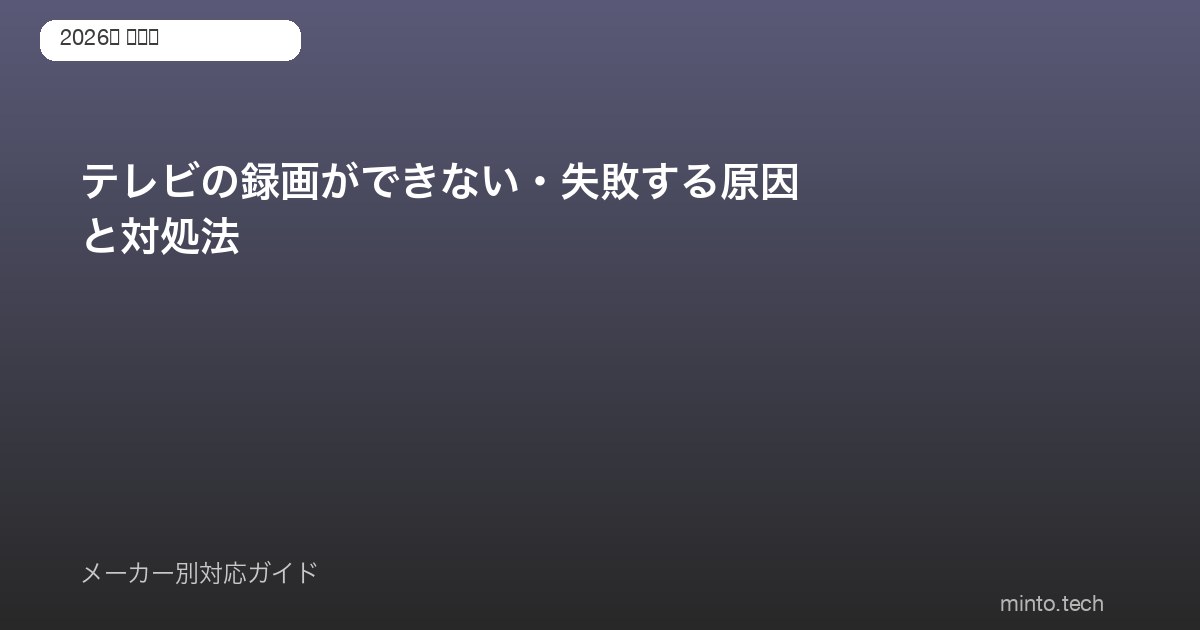 録画ができない原因は、USBハードディスクの未登録や容量不足から、B-CASカードの認証エラーまで多岐にわたります。本記事では、テレビの録画ができない・失敗する原因と対処法を、メーカー別の設定手順も含めて徹底的に解説します。