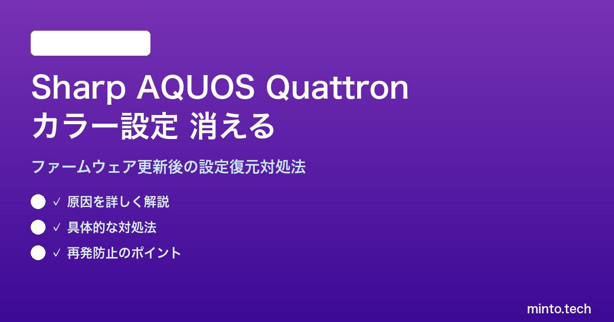 Sharp AQUOS Quattronのカラー設定がアップデート後に消える問題の主な原因は、ファームウェアアップデートによる映像パラメータの初期化です。これはAQUOSの映像処理エンジンが精緻であるがゆえに発生する問題でもあります。
