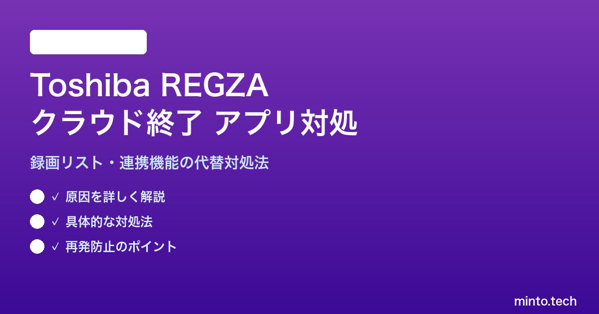 「REGZAのクラウドサービスが終了してからアプリが起動しなくなった」「録画データにアクセスできない」「スマホアプリとの連携が切れてしまった」——東芝REGZAシリーズのクラウドサービス終了に伴い、こうした問題に直面しているユーザーが急増しています。