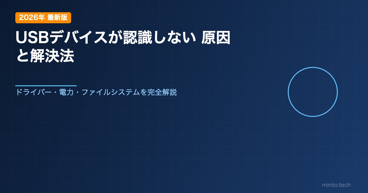 USBメモリや外付けHDDを接続したのに「USBデバイスが認識されません」と表示される、デバイスマネージャーに「不明なデバイス」と出る…USBの認識問題はWindowsで非常によくあるトラブルです。この記事では、USBデバイスが認識されない原因と解決方法を徹底解説します。