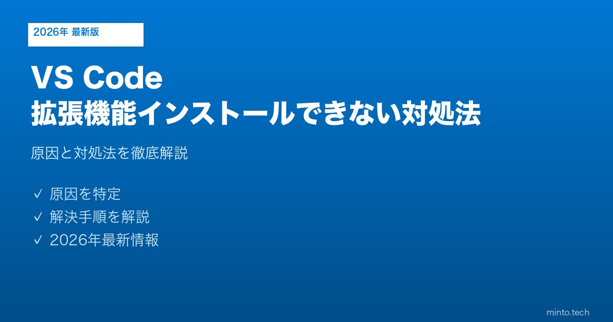 【2026年最新版】VS Codeの拡張機能がインストールできない・エラーになる原因と対処法【完全ガイド】