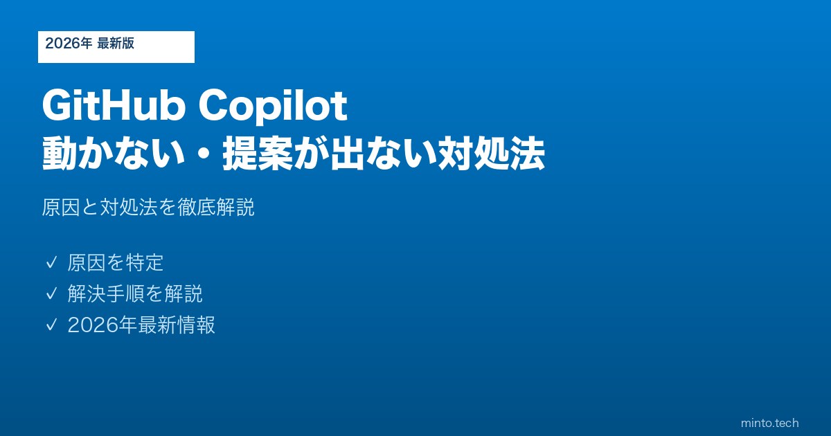 【2026年最新版】VS CodeのGitHub Copilotが動かない・提案が出ない原因と対処法【完全ガイド】