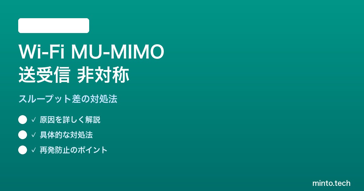 Wi-Fiの通信速度を調べたとき、「ダウンロードは速いのにアップロードが遅い」「端末によって速度が大きく違う」という経験はありませんか?その背景にあるのが、MU-MIMOの送信専用(TX-only)と受信専用(RX-only)の非対称な実装です。本記事では、MU-MIMOが引き起こす非対称スループット問題の仕組みと、具体的な対処法を詳しく解説します。