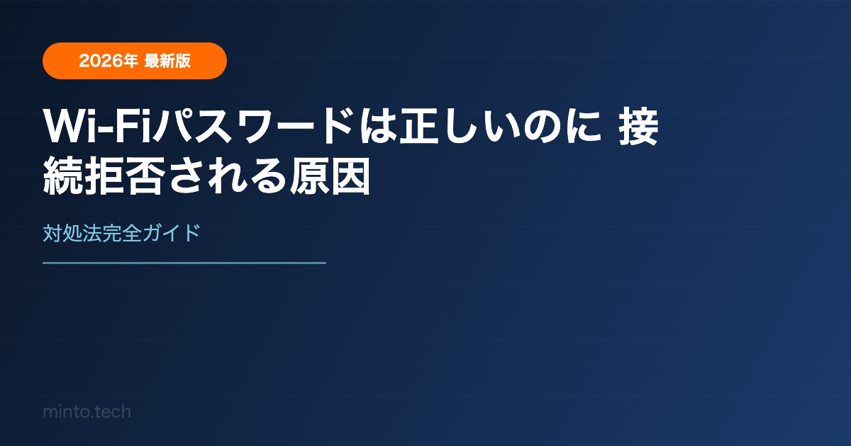 Wi-Fiのパスワードは正しく入力しているはずなのに「接続できません」「パスワードが正しくありません」と表示されてしまう——このトラブルはパスワード以外の原因で起きていることがほとんどです。この記事では接続拒否の原因と対処法を解説します。