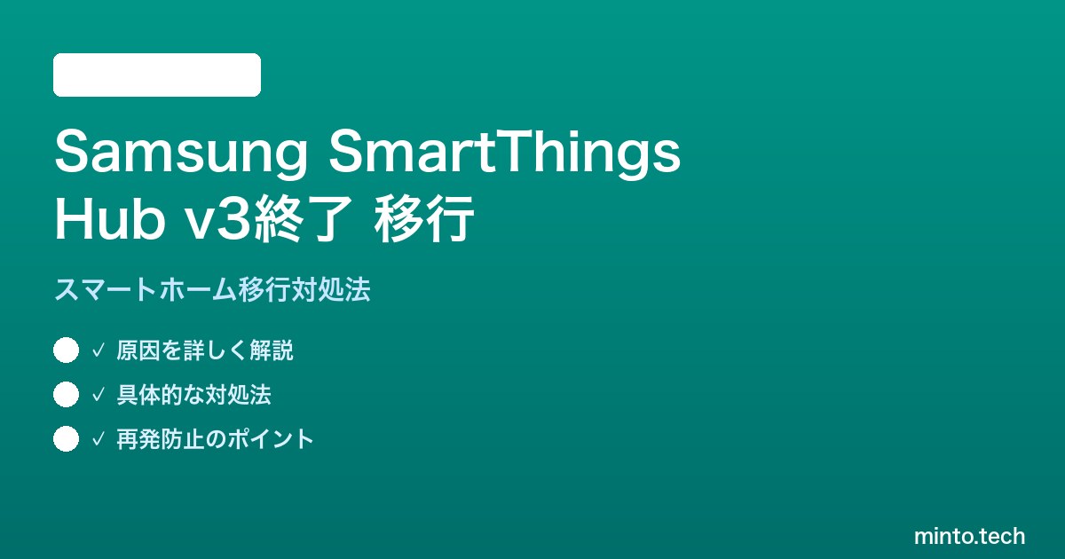 「Samsung SmartThings Hub v3(Model ET-WV525)のサポートが終了するという通知が来た」「旧SmartThings Hubで使っていたデバイスをどこに移行すればいいかわからない」「ZigbeeデバイスやZ-Waveデバイスがある場合、Hub終了後も使い続けられるのか?」――2026年に入りSmartThings Hub v3の扱いについて多くのユーザーが混乱しています。本記事では、SmartThings Hub v3の生産終了・サポート終了の背景から、スマートホームデバイスの移行先まで完全解説します。