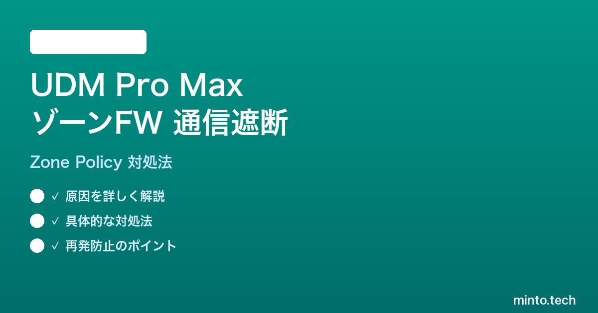 Ubiquiti UniFi Dream Machine Pro Max(UDM Pro Max)はUniFi Network 9.xで刷新された「Zone-Based Firewall(ゾーンベースファイアウォール)」をデフォルト採用しており、従来のLegacy FirewallからZone-Basedへの自動移行を契機に、VLAN間通信の遮断、IoTデバイス(Chromecast、Sonos、Google Homeなど)の突然のオフライン化、mDNSによるサービス検出の失敗といったトラブルが複数報告されています。本記事は、新旧ファイアウォールモデルの挙動差、Zone Policyの評価順序とDefault Zoneの設定、mDNS Reflectorの再有効化、UniFi Network 8.xへのロールバック手順、UniFi OS Network Conf出力の活用まで、ネットワーク管理者が実務で直面する切り分け手順を体系的に解説します。対象読者はUDM Pro Maxを含むUniFi Gatewayを運用するSMB/プロシューマー層、自宅に複数VLAN(LAN/IoT/Guest/Cameras等)を構築しているユーザー、およびネットワーク機器のファーム更新に伴う突然の通信不能に直面した方です。