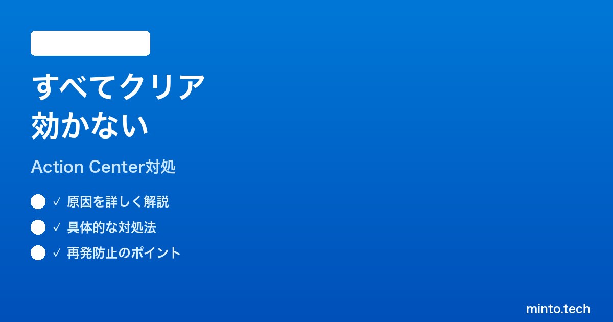 この記事では、Windows 11のアクションセンターで「すべてクリア」が効かない原因と、その対処法をステップバイステップで解説します。Windows 11 23H2・24H2・25H2のいずれのバージョンでも使える内容です。