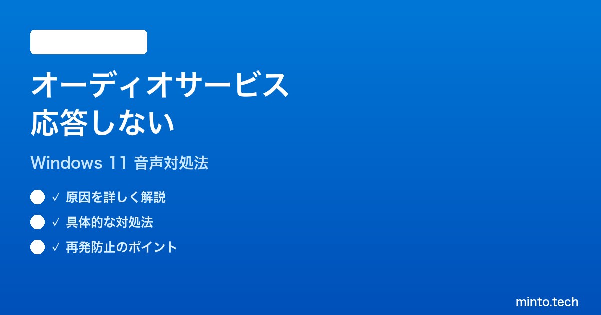 Windows 11を使っていて突然「音が出なくなった」「オーディオサービスが応答していません」というエラーが表示された経験はありませんか?タスクバーのスピーカーアイコンに×マークが付いて、サウンドが全く機能しなくなるこのトラブルは、Windows 11ユーザーの間でよく報告される問題です。本記事では、オーディオサービスが応答しない原因と、段階的な対処法を詳しく解説します。