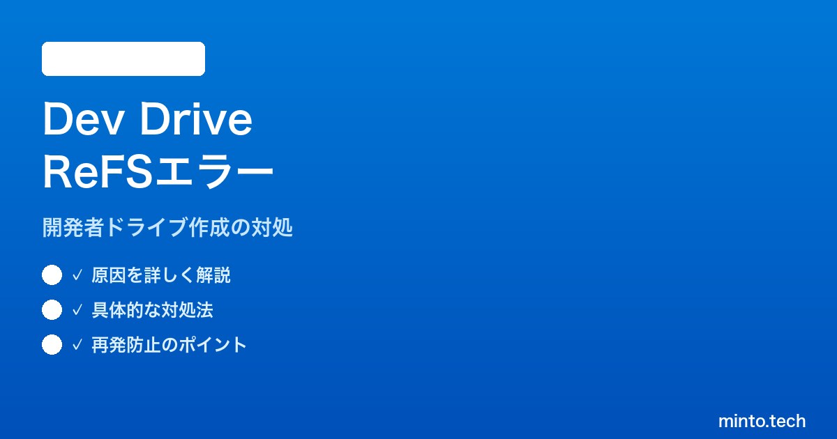 【2026年最新版】Windows 11のDev Drive(開発者ドライブ)作成でReFSエラーが出る対処法【完全ガイド】
