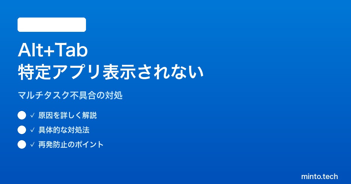 • Alt+Tabとタスクビューで特定のアプリが表示されない主な原因