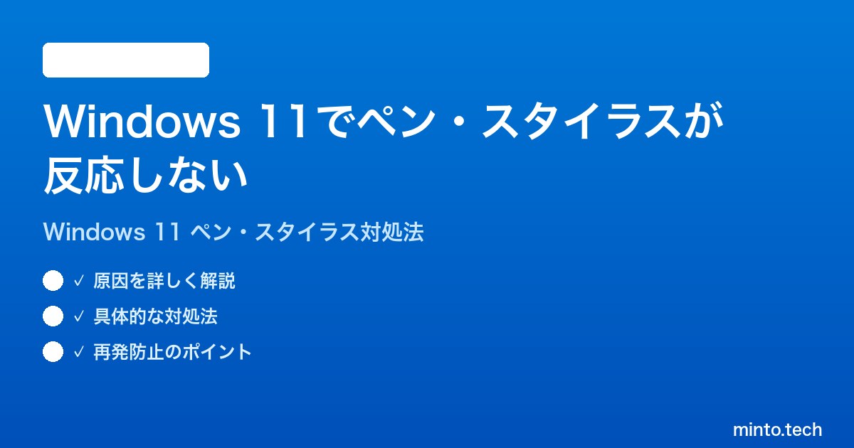 この記事では、Windows 11でペン・スタイラスが反応しない場合の主な原因と、自分で解決できる対処法を5つ詳しく解説します。Surface Pen・Wacom・その他サードパーティ製スタイラス、いずれの場合も参考にしていただけます。