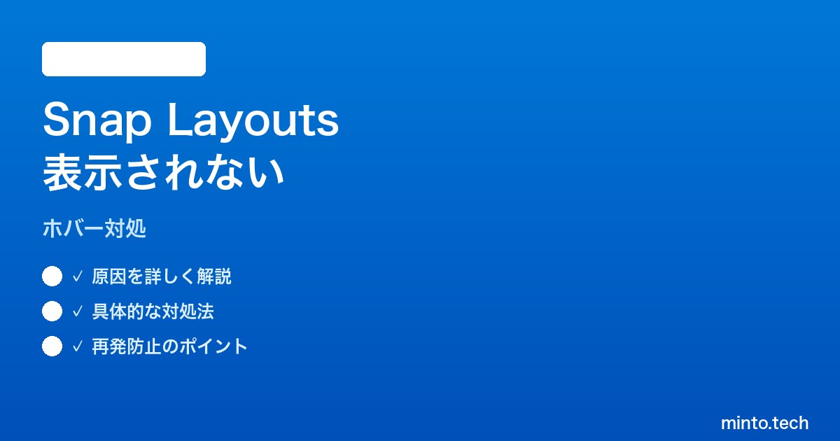 この記事では、Windows 11 のスナップレイアウトが表示されないときに確認すべき設定を、システム設定・ディスプレイ・更新・グループポリシー・アプリ互換性の5つの観点から徹底的に解説します。読み終わるころには、自分の環境のどこに原因があるのか確実に特定できるようになります。