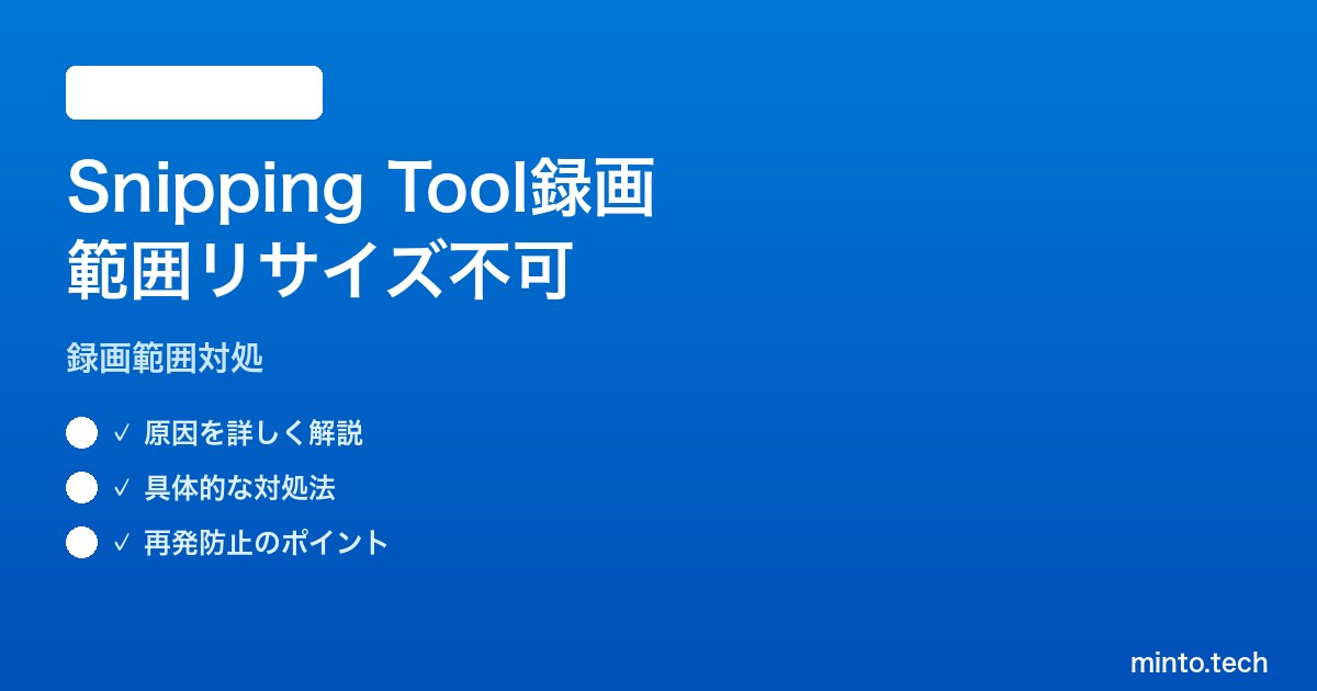 Windows 11のSnipping Toolで画面録画範囲のリサイズができないのは仕様であり、現時点で正攻法での解決は困難です。代わりに、録画前の正確な範囲指定テクニックを身につけるか、OBS Studio・Game Bar・ScreenToGifといった代替ツールに切り替えるのが現実的な解決策となります。