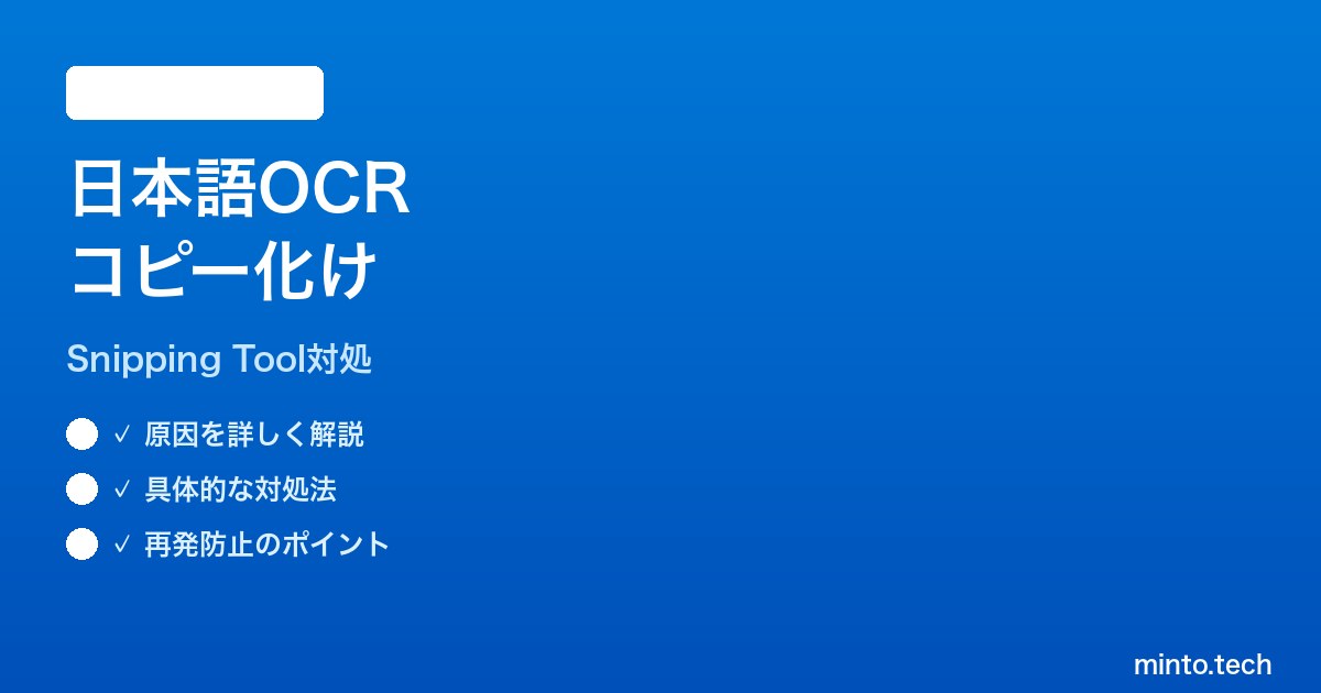 Windows 11標準のSnipping Tool(切り取り&スケッチ)に搭載されている「テキスト抽出(OCR)」は、画面の任意の領域から日本語の文字を抜き出せる便利な機能です。ところが、抽出した日本語をコピーしてWordやメール、ブラウザに貼り付けると、文字化けしたり空白に置き換わったり、改行が崩れたりするケースが多発しています。重要なのは、「OCR認識自体は成功している」という点です。Snipping Toolのプレビュー画面では正しく日本語が表示されているのに、コピーして貼り付けた瞬間に豆腐(□)・空白・改行崩れ・濁点分離・全角半角混在といった崩れが発生するのです。