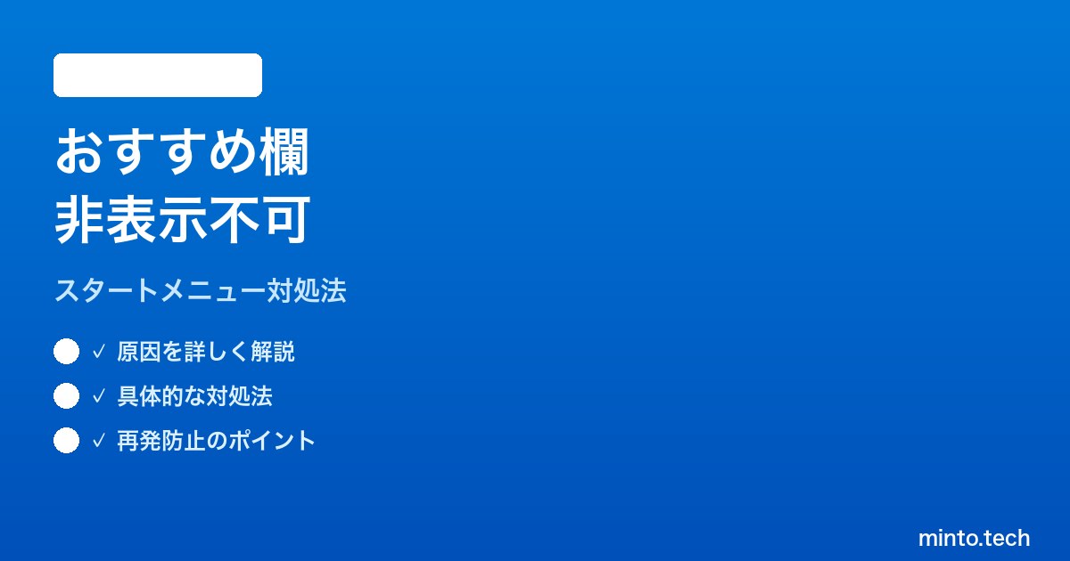 【2026年最新版】Windows 11のスタートメニュー「おすすめ」を非表示にできない時の対処法【完全ガイド】