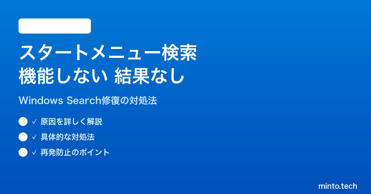 Home / Microsoft / Windows / 【2026年最新版】Windows 11のスタートメニュー検索が機能しない・結果が表示されない対処法【完全ガイド】