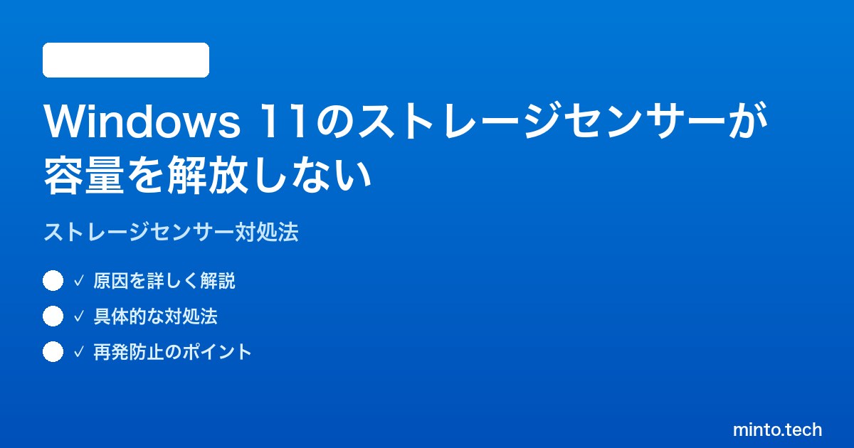 Windows 11のストレージセンサーが容量を解放しない問題の主な原因と対処法をまとめると以下の通りです。