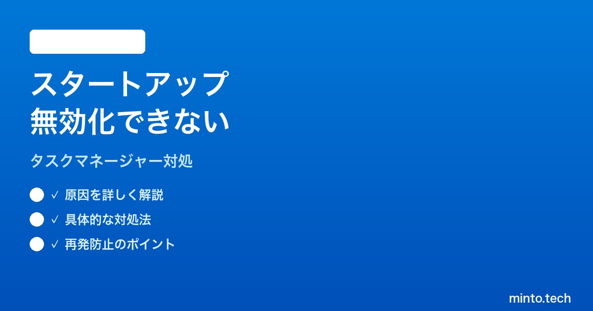 【2026年最新版】Windows 11のタスクマネージャーでスタートアップアプリを無効にできない時の対処法【完全ガイド】