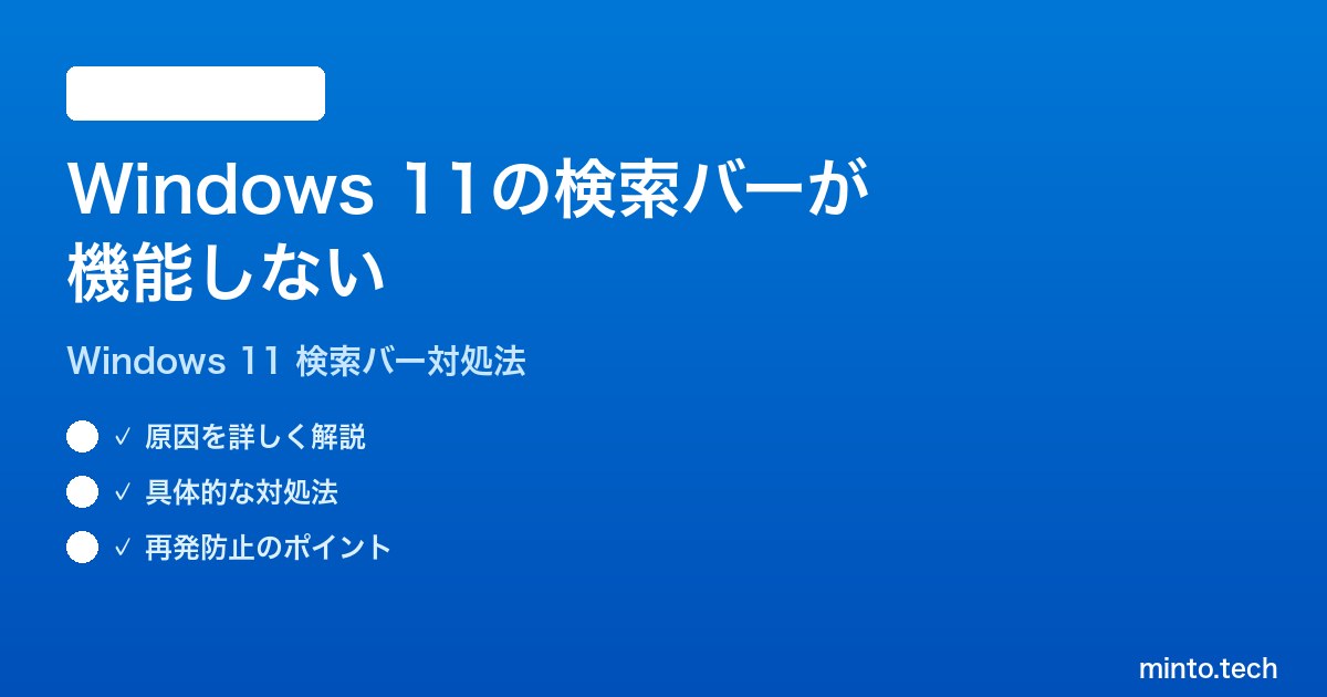 Windows 11の検索バーが動作しなくなる原因は複数あります。どの原因に当てはまるかを把握することで、最適な対処法を素早く選択できます。