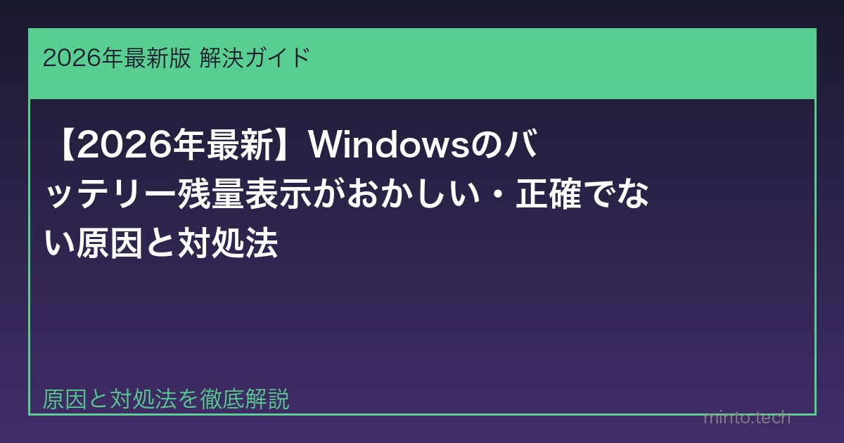 Windowsのノートパソコンでバッテリー残量が「80%」表示なのに突然シャットダウンしたり、「100%充電済み」なのに実際の持続時間が短いという問題は、バッテリーのキャリブレーション(補正)がずれていることが主な原因です。