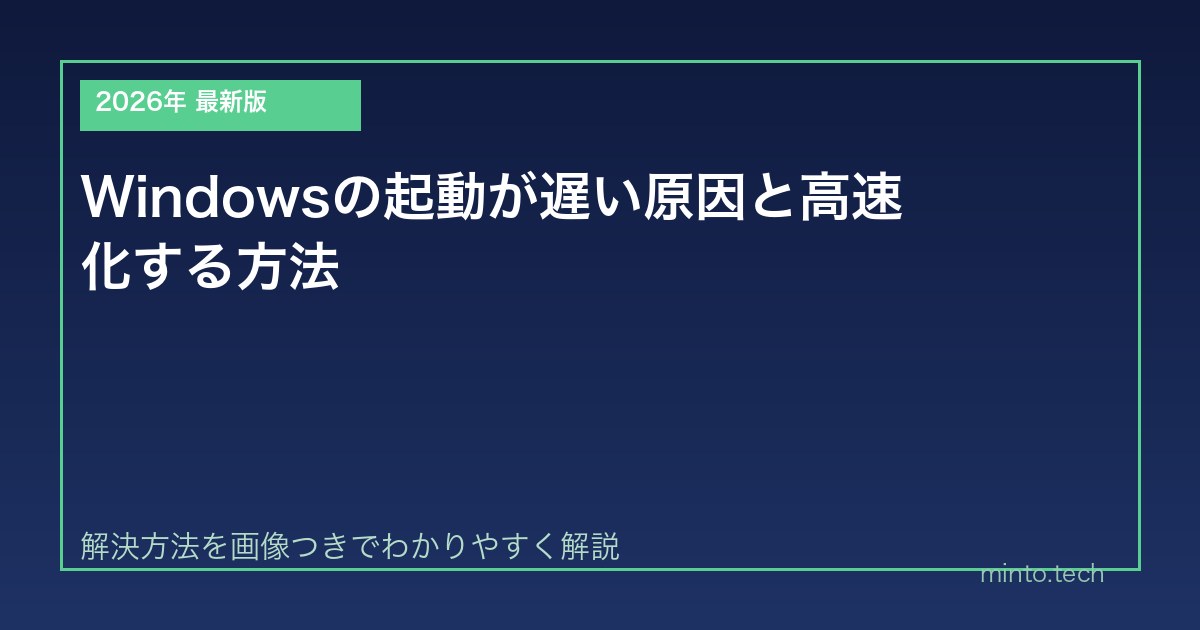 【2026年最新版】Windowsの起動が遅い原因と高速化する方法【完全ガイド】 - 設定手順