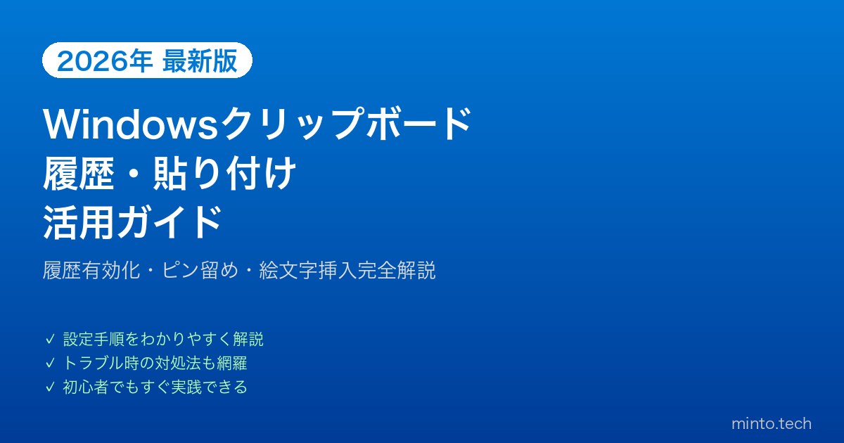 【2026年最新版】Windowsクリップボード履歴・貼り付け活用完全ガイド