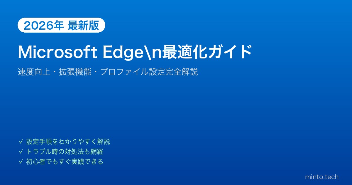本記事では、Edgeのパフォーマンス改善、拡張機能の活用、複数プロファイルの使い分け、プライバシー設定の最適化まで、Edgeを完全に使いこなすための設定をすべて解説します。