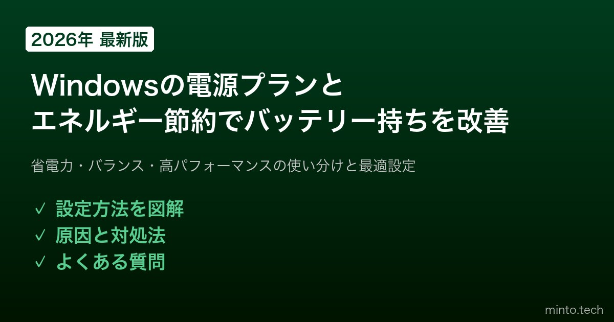Home / Microsoft / Windows / 【2026年最新版】Windowsの電源プランとエネルギー節約設定でバッテリー持ちを改善する方法【完全ガイド】
