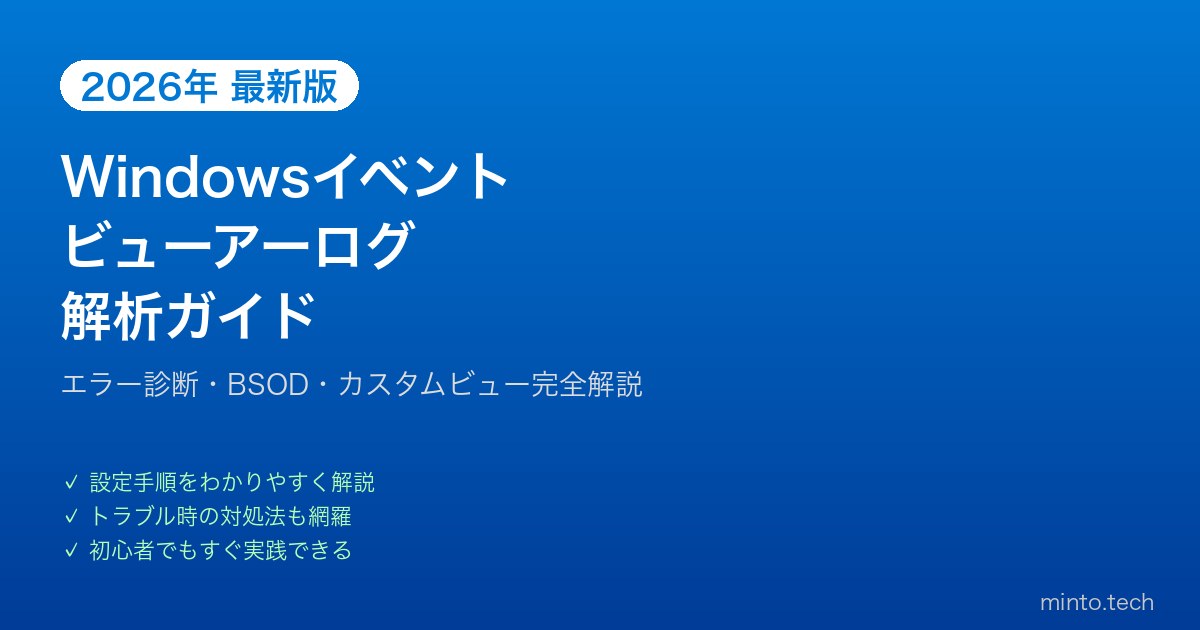 【2026年最新版】Windowsイベントビューアーでログ解析する完全ガイド【エラー診断】