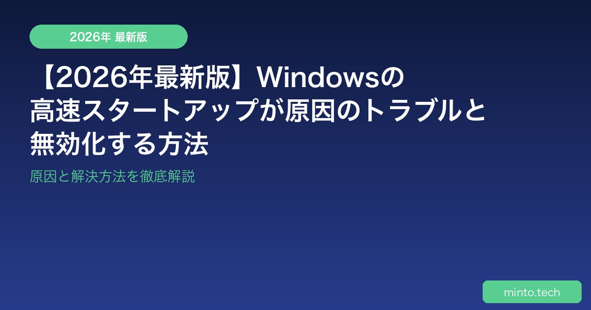 Windowsの高速スタートアップは便利な反面、様々なトラブルの原因となることがあります。ドライバー問題・デュアルブート・デバイス認識問題がある場合は無効化することをおすすめします。SSD搭載PCなら起動速度への影響はほとんどありません。