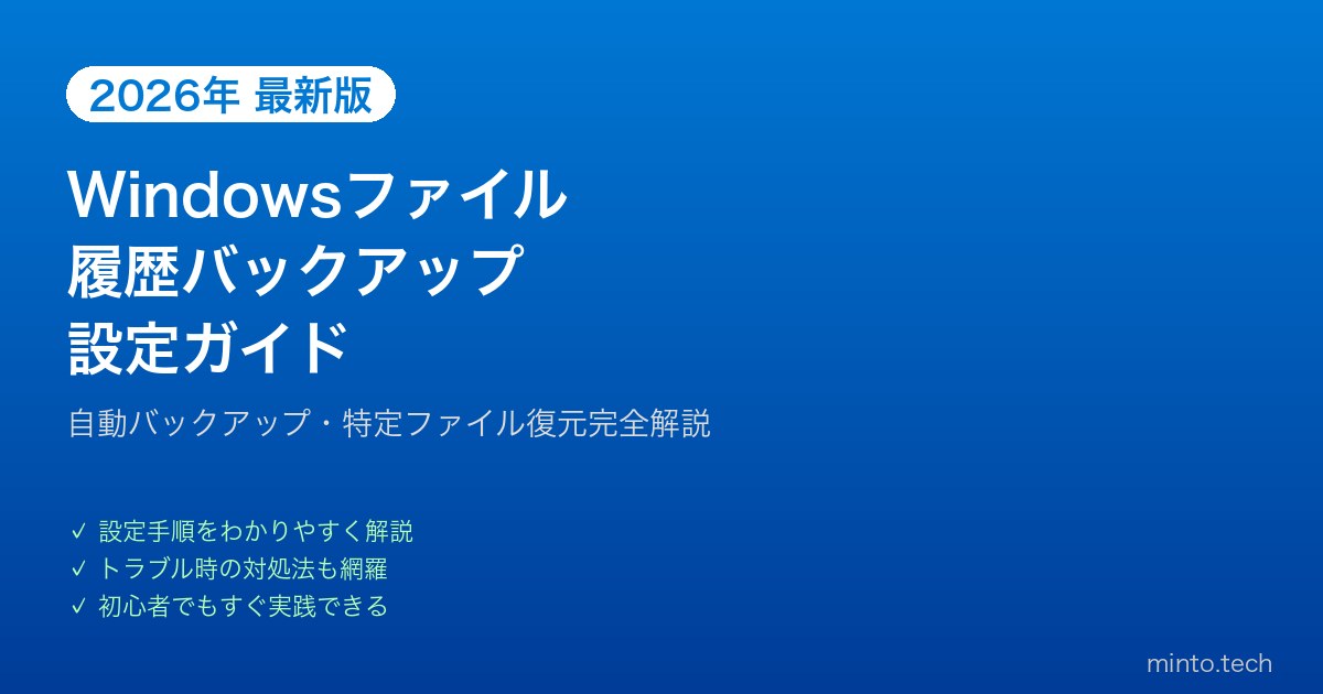 Home / Microsoft / Windows / 【2026年最新版】Windowsのファイル履歴バックアップ完全ガイド【設定・復元方法】