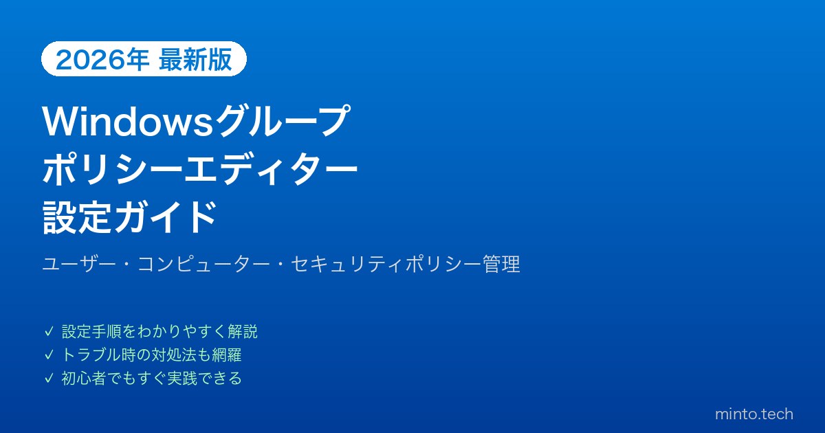 【2026年最新版】Windowsグループポリシーエディターで設定を管理する完全ガイド