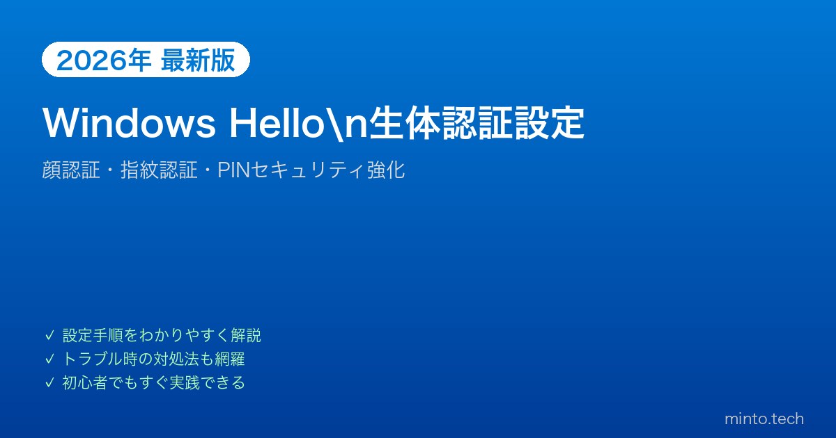 Home / Microsoft / Windows / 【2026年最新版】Windows Helloの顔認証・指紋認証設定完全ガイド【セキュリティ強化】