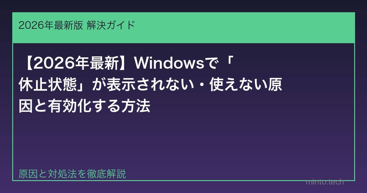 Windowsで「休止状態」を有効化するには、コントロールパネルの「電源オプション」から「現在利用可能でない設定」を変更するか、管理者コマンドプロンプトで powercfg /hibernate on を実行してください。SSD搭載機ではhiberfil.sysが大容量を消費する点に注意が必要です。