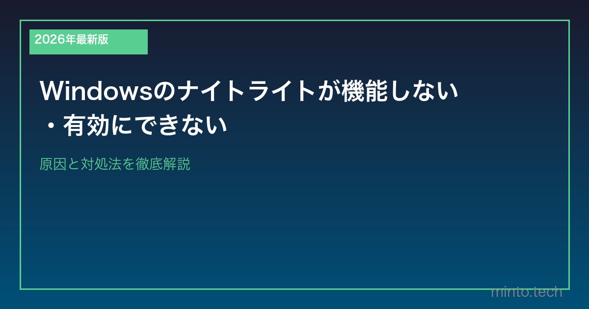 Home / Microsoft / Windows / 【2026年最新版】Windowsのナイトライトが機能しない・有効にできない原因と対処法