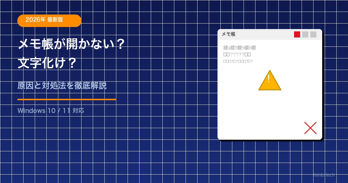 Home / Microsoft / Windows / 【2026年最新版】Windowsのメモ帳が開かない・文字化けする原因と対処法