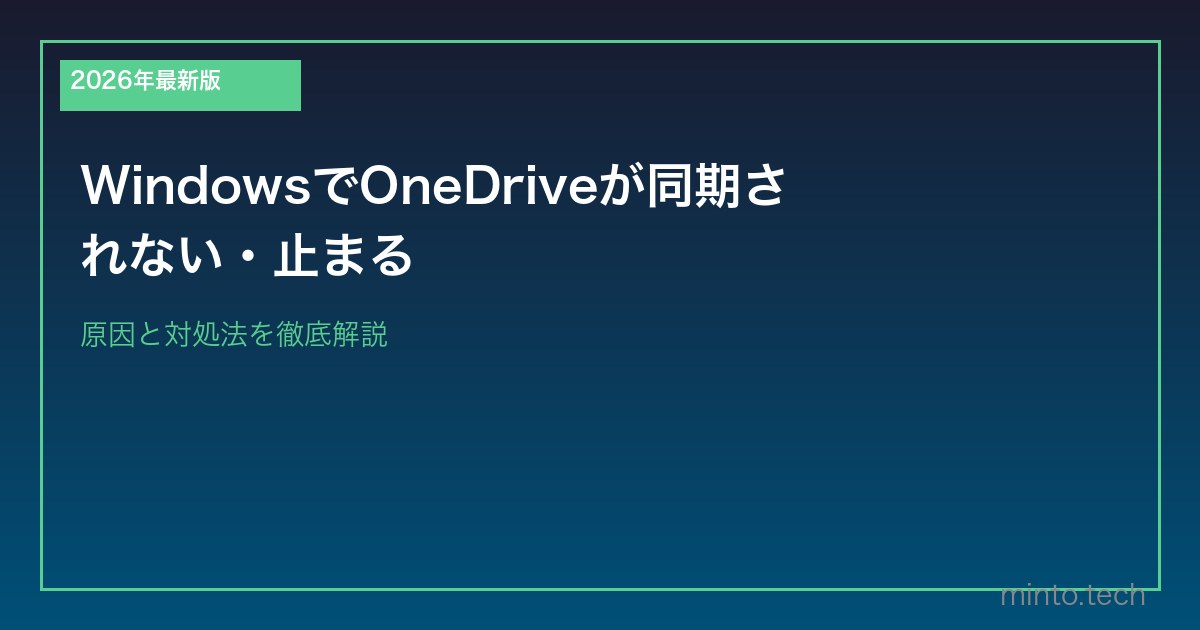 WindowsでOneDriveが同期されない・同期が止まる問題は、認証エラーやキャッシュの問題が主な原因です。本記事でリセット・再サインイン・設定修正の手順を解説します。