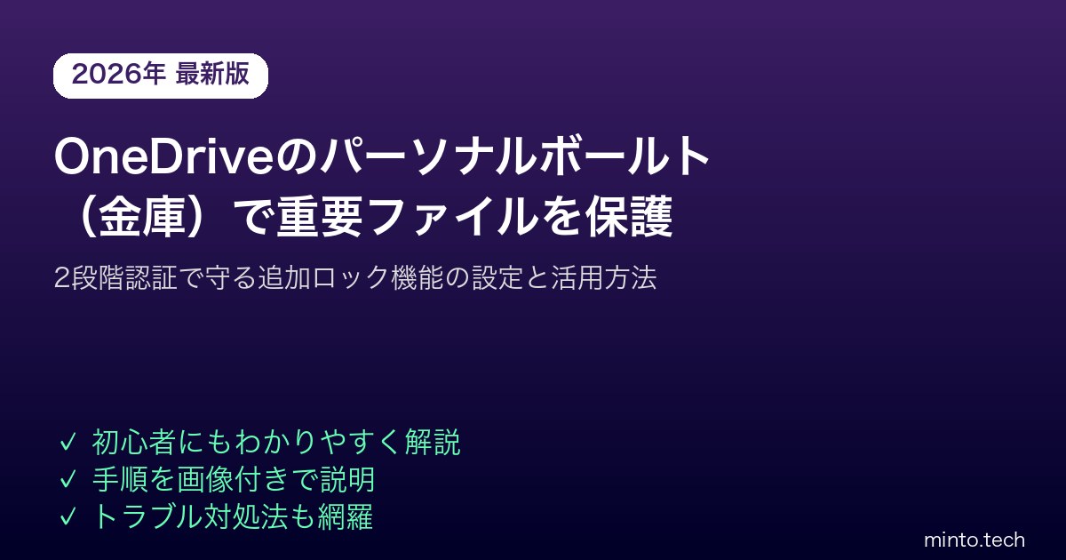 【2026年最新版】OneDriveのパーソナルボールト(金庫)で重要ファイルに追加ロックを設定する方法【完全ガイド】